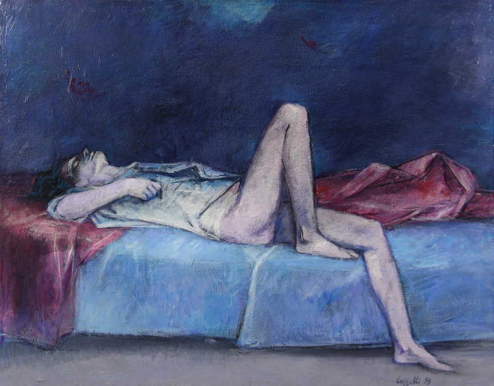 Lotto 92 | Giovanni Cappelli, Figura di notte, 1993, olio su tela, cm. 80x100, firmato e...