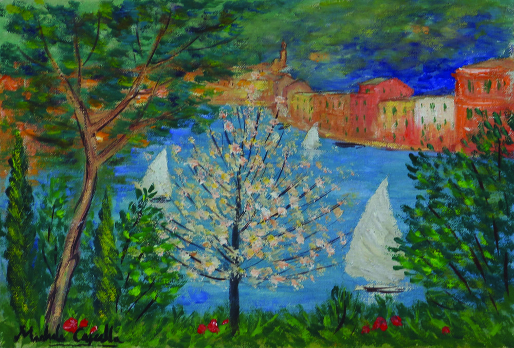 Michele Cascella, Portofino, olio su tela, cm. 20x30, firmato in basso a sinistra e al retro, certificato di autenticità dell'artista su fotografia, certificato di autenticità della Telemarket
