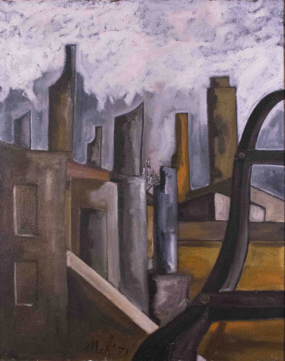 Giorgio Melzi (Milano 1944), Periferia e forme, 1971 Olio su tela, 100 x 80 cm. Titolo, data, prezzo in lire e firma Melzi a verso dell'opera. Provenienza: Galleria d'Arte Cadorna, Milano
