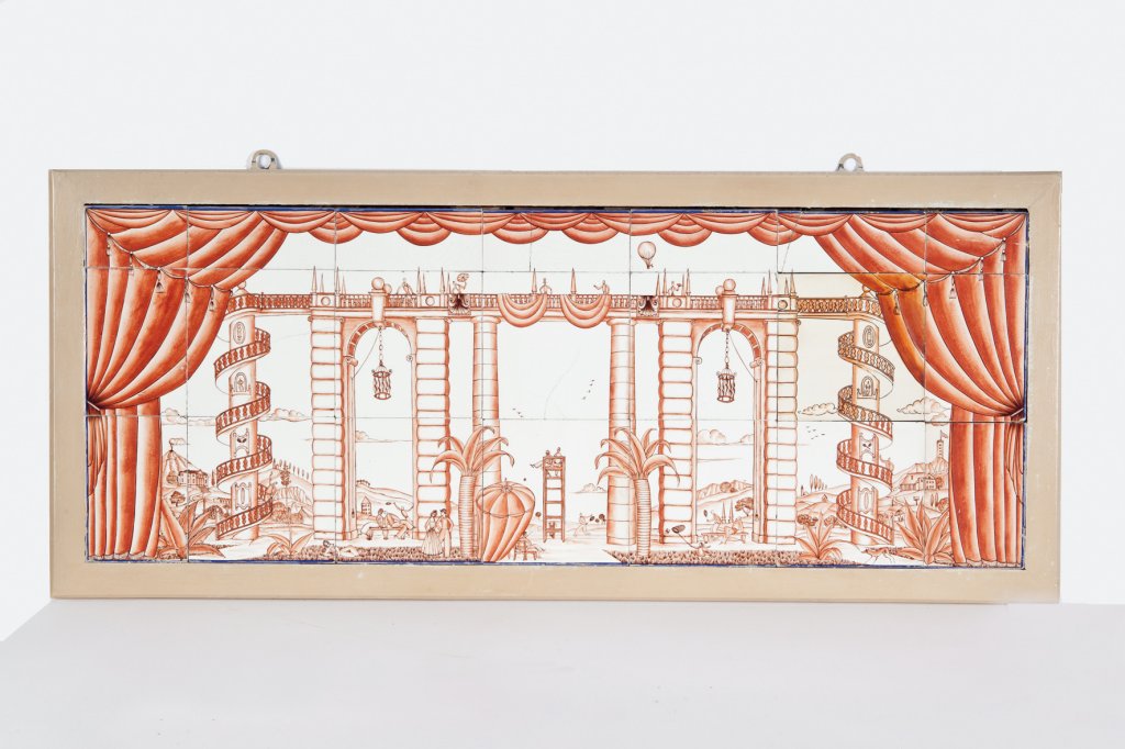 Un pannello costituito da 21 piastrelle in ceramica con decoro dipinto a mano, anni '30.