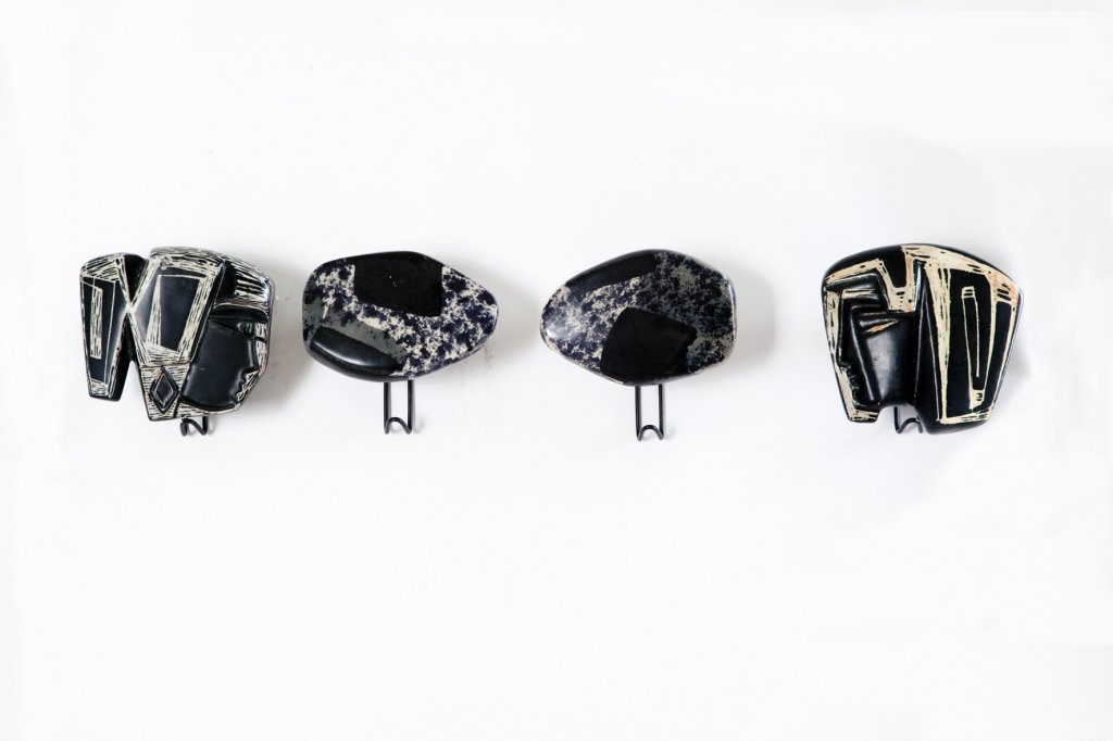 VICTOR CERRATO Quattro elementi di un appendiabiti, anni '50. Ceramica,...