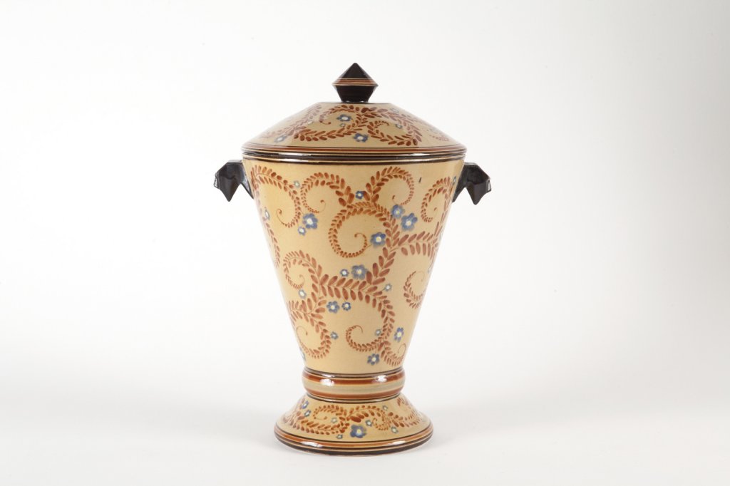 DARIO RAVANO, Albisola. Un vaso in ceramica con coperchio, anni '50. Marcato...