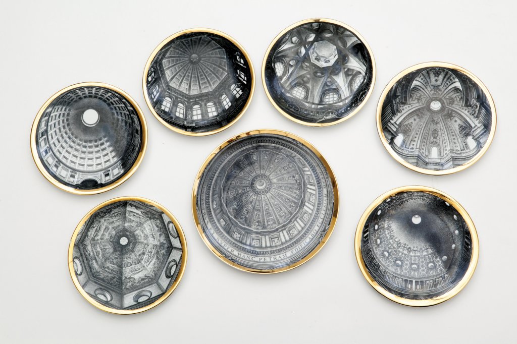 PIERO FORNASETTI Sette piatti della serie "Cupole d'Italia", anni '60....