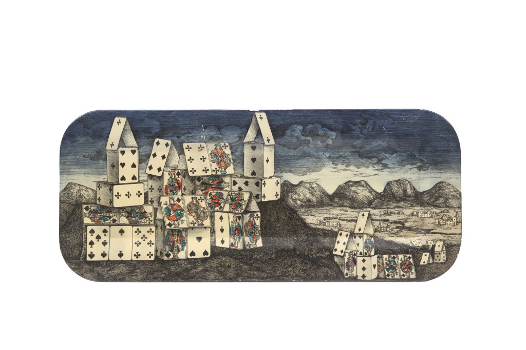 PIERO FORNASETTI Un vassoio decoro "Città di carte", anni '50. Alluminio...