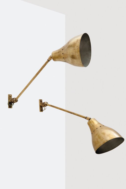 DUE LAMPADE A PARETE, anni '50. Ottone. Lunghezza cm 54.