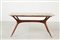 UN TAVOLINO, anni '50. Legno di faggio tinto all'anilina, ottone, marmo. Cm...