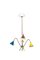 UN LAMPADARIO, anni '50. Ottone, alluminio laccato. Altezza cm 88, diametro...