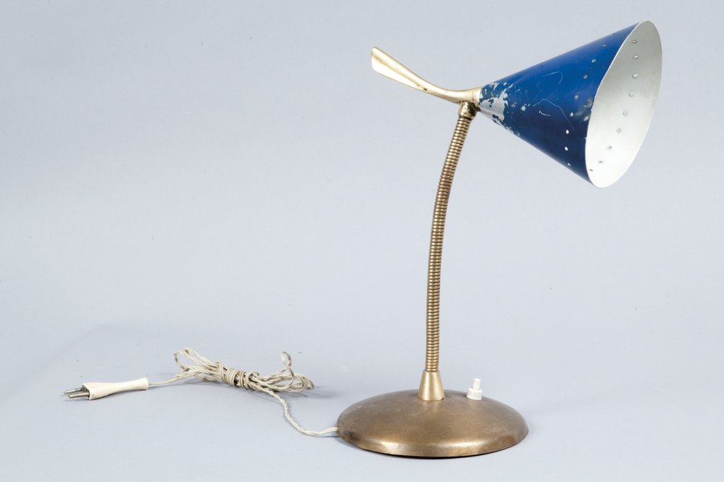 UNA LAMPADA DA TAVOLO, anni '50. Ottone, alluminio laccato. Altezza cm 34.