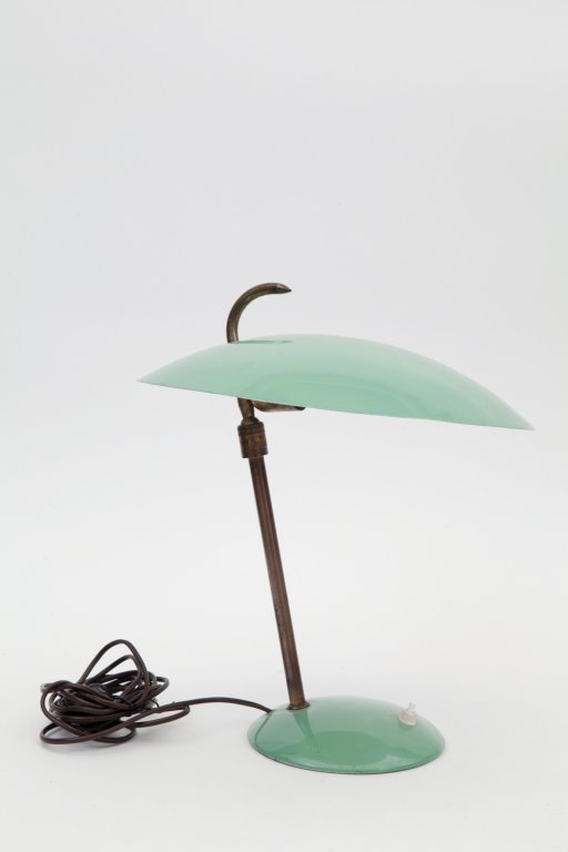 UNA LAMPADA DA TAVOLO, anni '50. Ottone, alluminio laccato. Altezza cm 37.