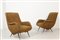 DUE POLTRONE, anni '60. Gambe di ferro verniciato, piedini di ottone,...