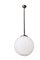 UNA LAMPADA A SOSPENSIONE, anni '70. Metallo cromato, globo di vetro...