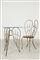 UN TAVOLINO E UNA SEDIA DA ESTERNO, anni "70. Ferro forgiato verniciato,...