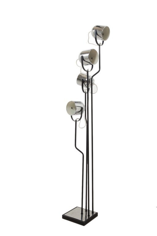 UNA LAMPADA DA TERRA, anni '70. Ferro verniciato, acciaio cromato. Altezza cm...
