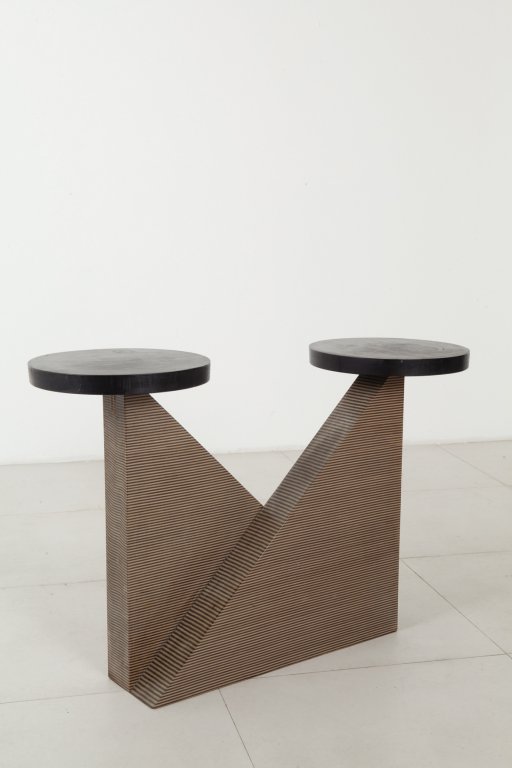 Lotto 1441 | UN TAVOLINO, anni '80. Legno lamellare, legno laccato. Cm 62 (h) x 92 x 32.