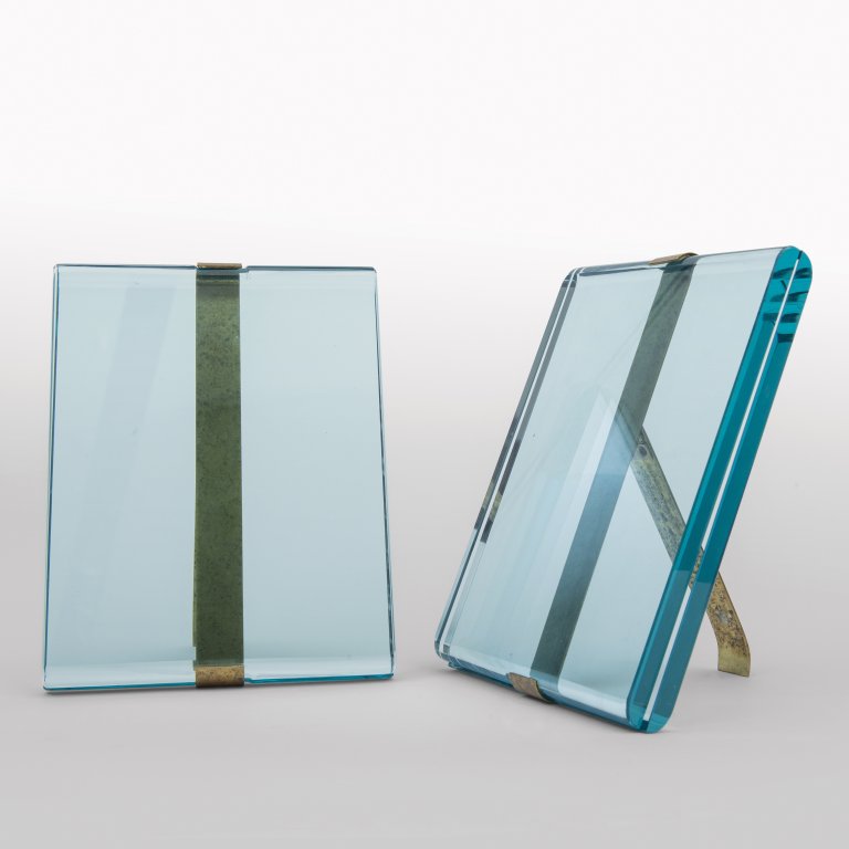 FONTANA ARTE Due portaritratti "1370/1", circa 1955. Cristalli molati con...