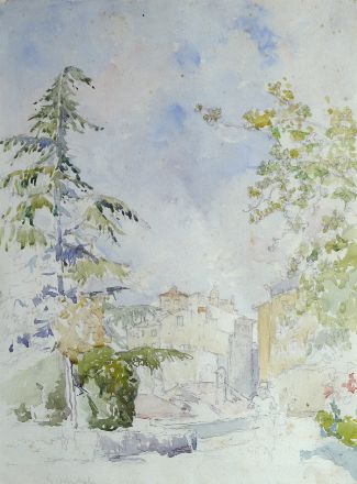 Guglielmo Micheli (Livorno, 1862 - 1926) PAESE tempera su carta, cm. 37,5x27,5 Firma in basso a sinistra.