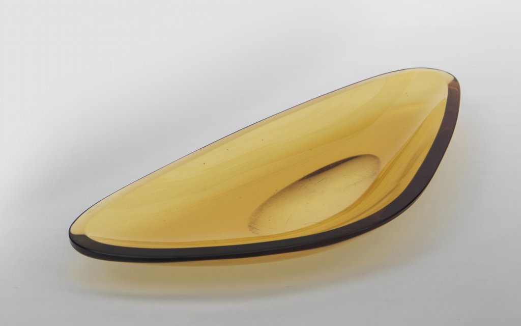 Cristallo colorato sagomato curvato e molato.
