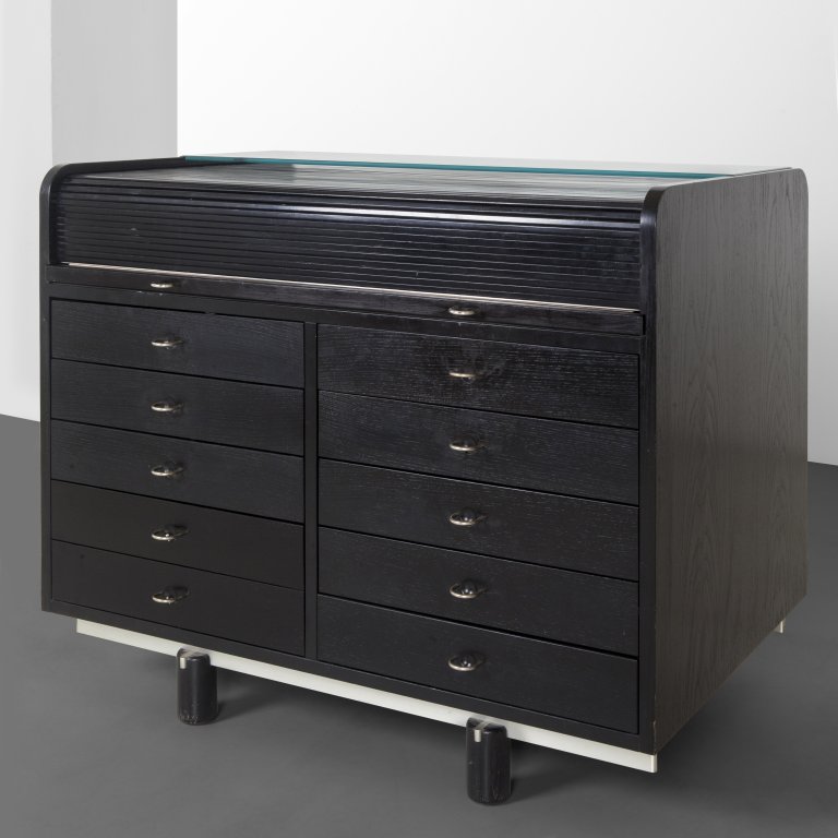 GIANFRANCO FRATTINIUna scrivania a rullo per BERNINI, circa 1967. Legno...