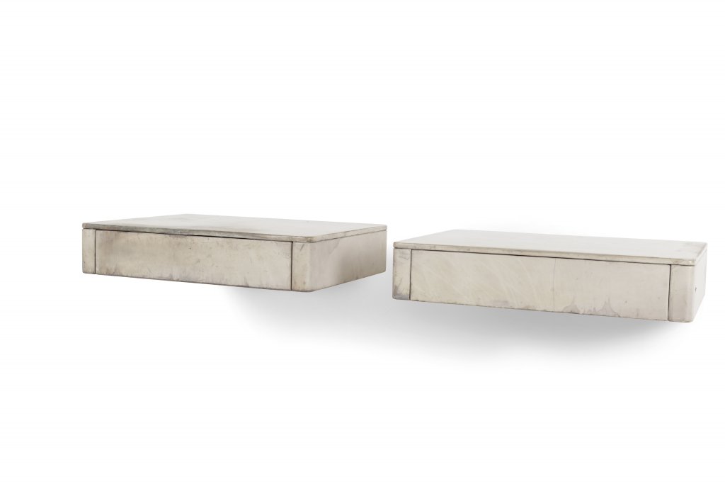 Lotto 2117 | OSVALDO BORSANI Due comodini pensili, anni '40. Legno rivestito in pelle. Cm...