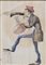 Angiolo Tricca (Borgo San Sepolcro, 1817 - Firenze, 1884) CARICATURA DEL PITTORE GELATI Acquarello su carta, cm. 34x24,5 Firma in basso al centro, titolo in alto al centro. Opera realizzata per il giornale satirico-caricaturale “Il Fischietto” di Torino. (difetti).
