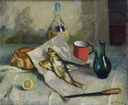Giulio Salti (Barberino di Mugello, 1899 - Firenze, 1987) NATURA MORTA Olio su cartone, cm. 50x60,5 Firma in basso a destra e sul verso.