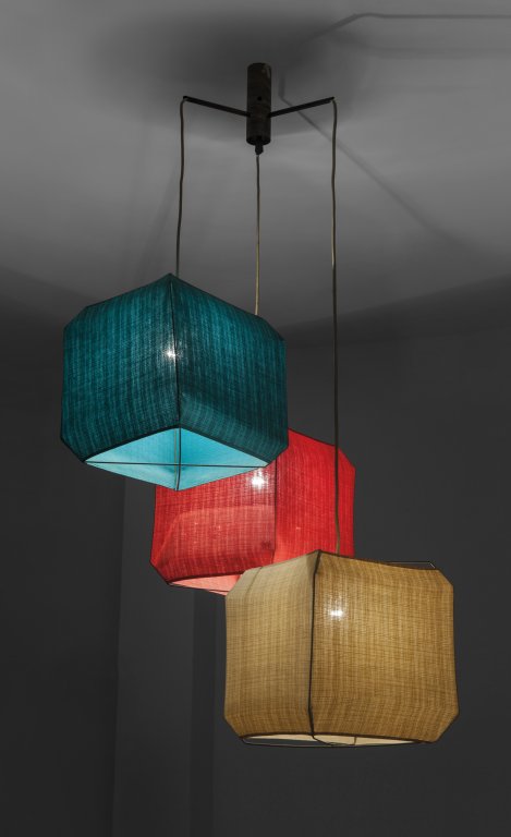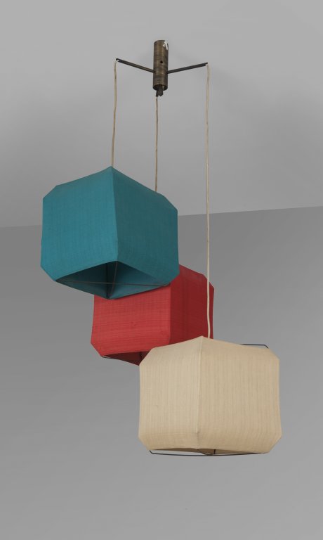 Una lampada a sospensione della serie "Bali" per DANESE, Milano, 1958.