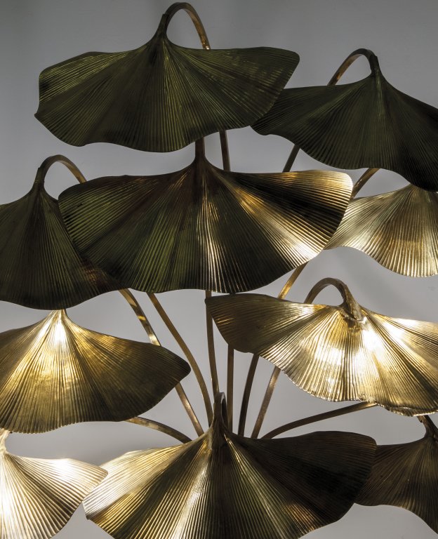 TOMMASO BARBI Una lampada da terra, fine anni '70. Ottone lucido. Cm 165 (h)...