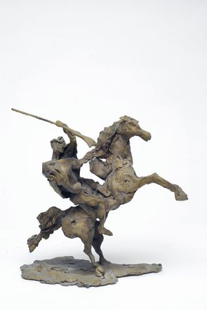 Lotto 942 | Piero Cerato (Torino, 1946) CAVALLO E CAVALIERE Bronzo, cm. h. 25