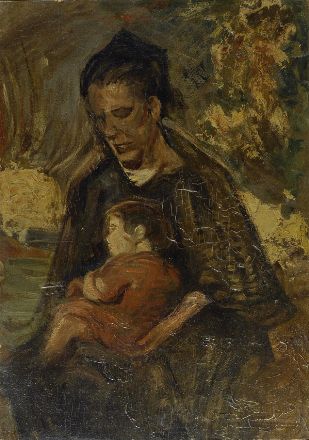 Cesare Ciani (Firenze, 1854 - 1925) MATERNITÀ Olio su cartone, cm. 34x24