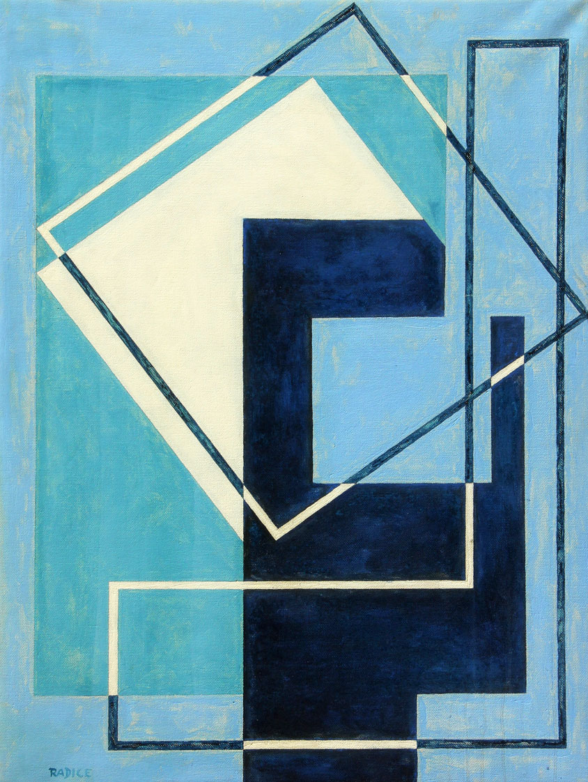Mario RADICE Como, 1898 Milano, 1987 Composizione, 1968, olio su tela, cm. 100 x 73, 'Mostra Collettiva N. 2164' catalogo della mostra presso la Galleria R. Rotta Farinelli, 2010, Genova, Firma 'Radice' (in basso a sinistra) #Firma 'Radice' (al retro) Autentica a cura di Luciano Caramel
