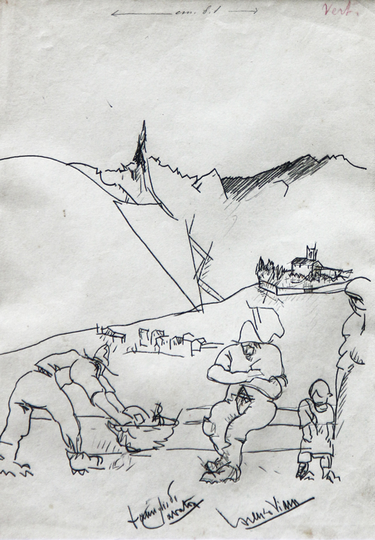 Lorenzo VIANI Viareggio 1882 Ostia 1936 Monte Carchio, 1920, matita su carta, cm. 31 x 21, Firma 'Lorenzo Viani' (in basso a destra) Autentica a cura di Enrico Dei, Viareggio