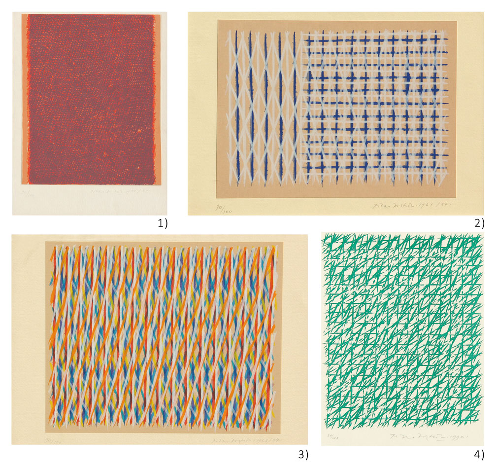 Piero DORAZIO Roma 1927 Todi 2005 Senza titolo, 1958, litografia a colori, cm. 32 x 47, Lotto composto da 4 litografie, tutte in edizioni di 100 esemplari, numerate in basso a sinistra, e firmate e datate in basso a destra: #- la prima è datata 1958/84 e misura cm. 47.5x32.5 #- la seconda e la terza sono datate 1963/84 e misurano cm. 32x47 #- la quarta è datata 1990 e misura cm. 37x27