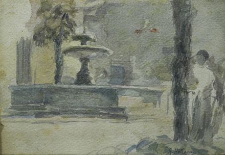 Alfonso Hollaender (Ratisbona, 1845 - Firenze, 1923) FONTANA Acquerello su cartoncino, cm. 10x14,5 Firma in basso a destra.