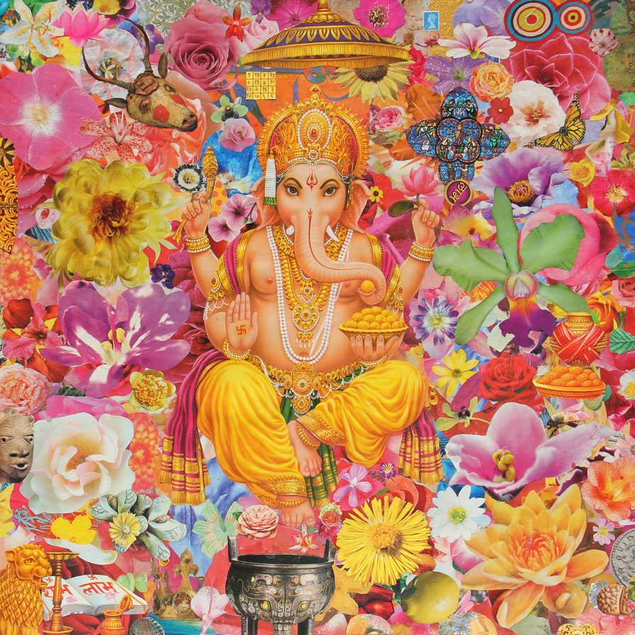 Felipe CARDENA Balaguer, 1979 Divinità eterne sedevano su troni di stelle, 2012, collage e tecnica mista su tela, cm. 80 x 80, Titolo, iniziali, firma, data 'Divinità eterne sedevano su troni di stelle, FC, Felipe Cardena, 2012' (al retro) Autentica dell'artista su fotografia, con etichetta della galleria D.L. Arte, Milano