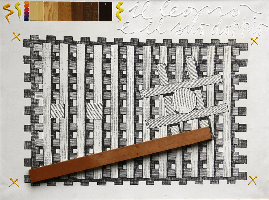 Concetto POZZATI Vò Vecchio (Pd) 1935 Il legno e il suo doppio, 1974, tecnica mista su tela, cm. 86 x 116, 'Concetto Pozzati', Galleria d'arte Spagnoli, Firenze, 1975, ill., Firma, data 'Pozzati, 1974'; #firma, data, titolo, misure 'Pozzati, 1974, Il legno e il suo doppio, cm 86x116'; #etichetta della Galleria Spagnoli, Firenze (al retro) Autentica dell'artista su fotografia