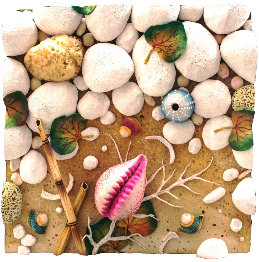 Piero GILARDI Torino 1942 Mauritia sulla spiaggia, poliuretano espanso, cm. 50 x 50, Titolo, firma 'Mauritia sulla spiaggia, Gilardi' (al retro) Autentica dell'artista su fotografia