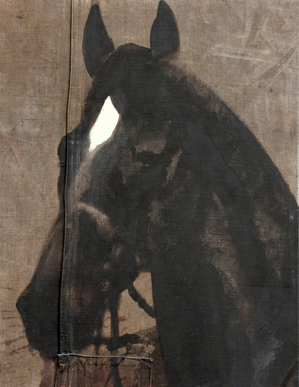 Luca PIGNATELLI Milano 1962 Lucky star, 2000, olio su telone di copertura di vagone ferroviario, cm. 78 x 60, Firma, data, titolo, scritta, luogo, data 'Luca Pignatelli, 2000, Lucky star, la stella bianca di Louis, Luca, Udine, 16.XII.2000' (al retro) Autentica dell'artista su fotografia