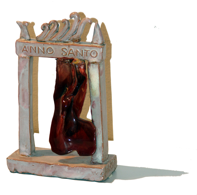 Fausto MELOTTI Rovereto 1901 Milano 1986 Anno Santo, 1950, ceramica smaltata policroma, cm. 18.5 x 11.5 x 5, Titolo 'Anno Santo' (in alto al centro); #scritta 'Fede Cheti' (su un lato) Autentica dell'Archivio Fausto Melotti, a cura di Marta Melotti, con n. 1950 92