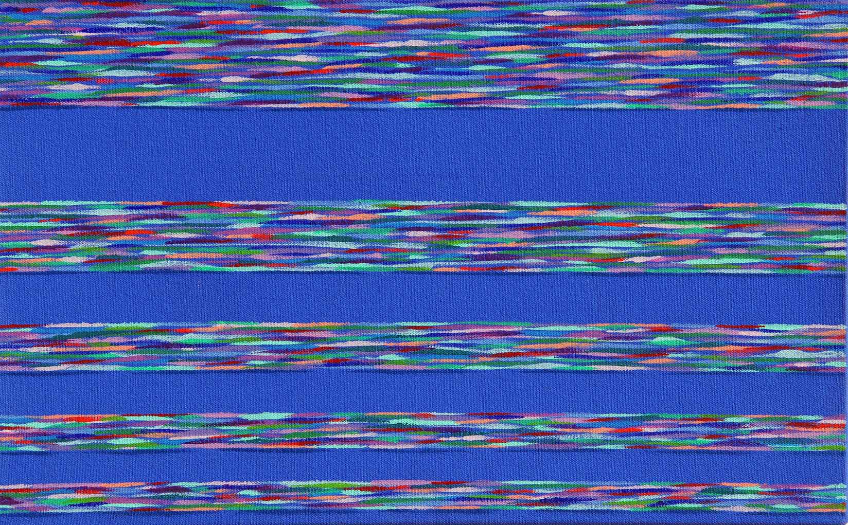 Piero DORAZIO Roma 1927 Todi 2005 Senza titolo, 1980, olio su tela, cm. 30 x 50, Firma 'Dorazio'; #timbro Piero Dorazio, con n. 1299; #etichetta Art Bales, 1988; #etichetta Art Frankfurt, 1989; #timbro Galerie Wasserman, Munchen; #timbro Galerie Wabermann, Munchen (al retro) Autentica dell'artista su fotografia
