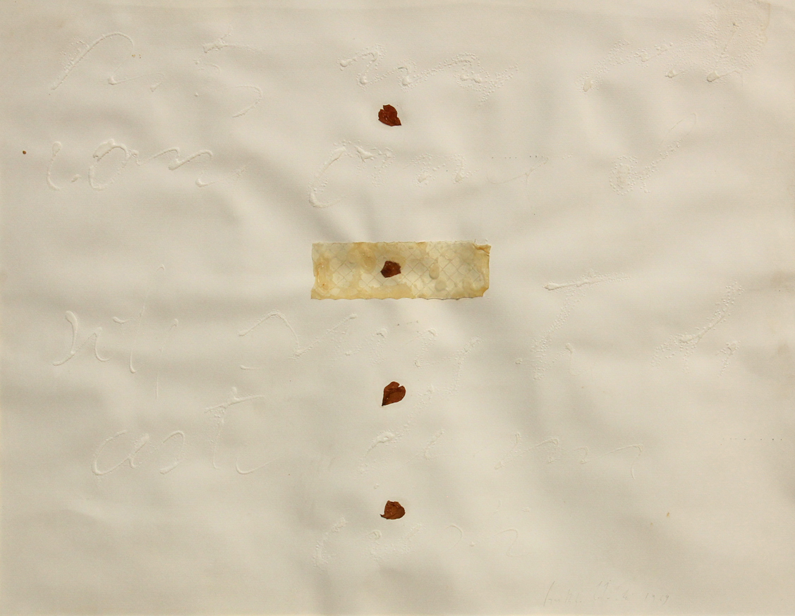 Pier Paolo CALZOLARI Bologna 1943 Senza titolo, 1969, tecnica mista su cartoncino, cm. 68 x 99, Firma, data 'Pier Paolo Calzolari, 1969' (in basso a destra) #Etichetta e timbro di Lattuada Studio, Milano (al retro) Autentica dell'artista su fotografia #Autentica dell'Archivio Pier Paolo Calzolari, con n. A-CAL-1969-89
