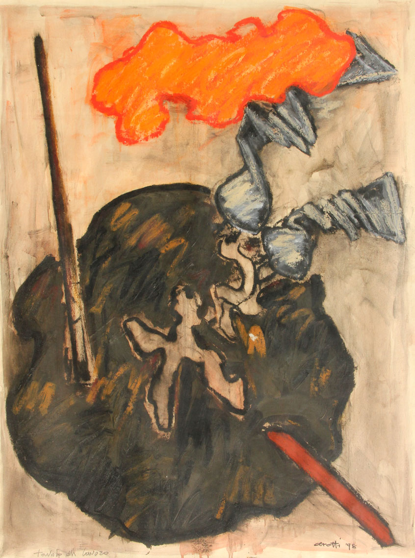 Mino CERETTI Milano 1930 Tavolo di lavoro, 1998, pastelli a olio e olio su carta, cm. 100 x 75, Titolo 'Tavolo di lavoro' (in basso a sinistra); #firma, data 'Ceretti, 98' (in basso a destra)