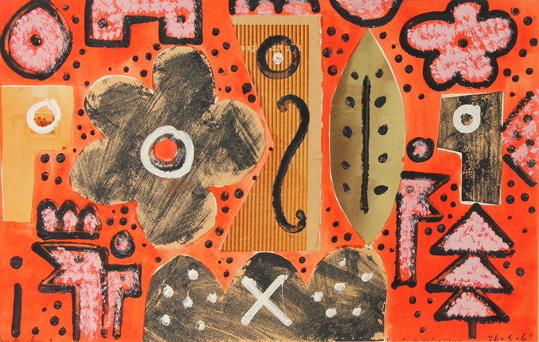 Philip MARTIN Essex 1927 Formation for waiting three, 1963, tecnica mista e collage su cartoncino, cm. 31 x 50, Firma 'Ph. Martin' (in basso a sinistra); #titolo, firma 'Formation for waiting three, 26-5-63' (in basso a destra)