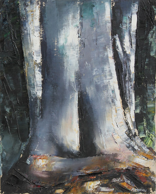 Paolo VALLORZ Caldes, 1931 Abete, 1986, olio su tela, cm. 50 x 40, Firma 'P....