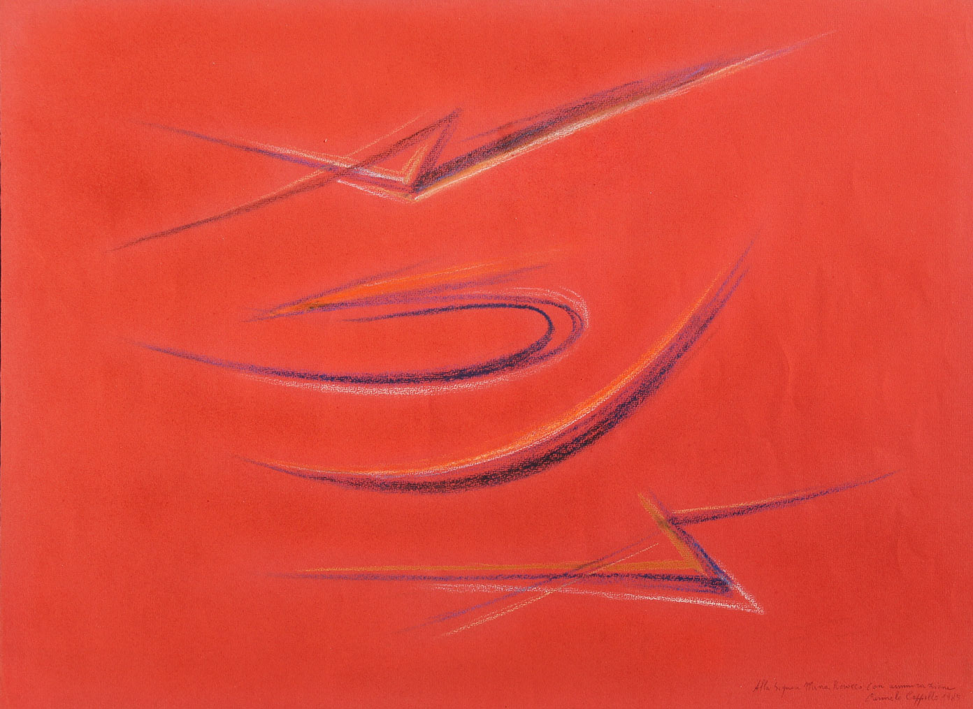 Carmelo CAPPELLO Ragusa, 1912 Milano, 1996 Senza titolo, 1985, pastelli su cartoncino, cm. 48 x 66, Dedica, firma, data 'Carmelo Cappello, 1985' (in basso a destra) Autentica dell'Archivio Carmelo Cappello, con numerazione PC85.004