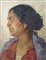 Cafiero Filippelli (Livorno, 1889 - 1973) PROFILO DI POPOLANA Olio su tela, cm. 45,5x36,4 Firmato in basso a destra: “CFilippelli”. Sul verso: timbro Galleria Gilardi, Livorno; antica etichetta inventariale.