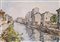 Giovanni Colombo da Busnago (Busnago 1908 - Gaggiano 1972) "Milano, scorcio con Naviglio" olio su tela (cm 50x70) Firmato in basso a destra In cornice