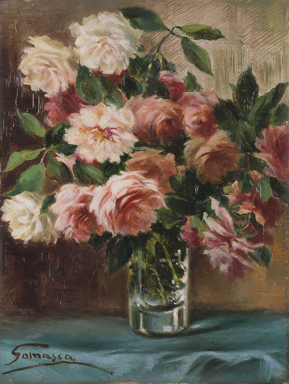 Mario Somasca (Busto Arsizio 1911 - 1952) "Vaso di fiori" olio su tela (cm 40x30) Firmato in basso a sinistra In cornice