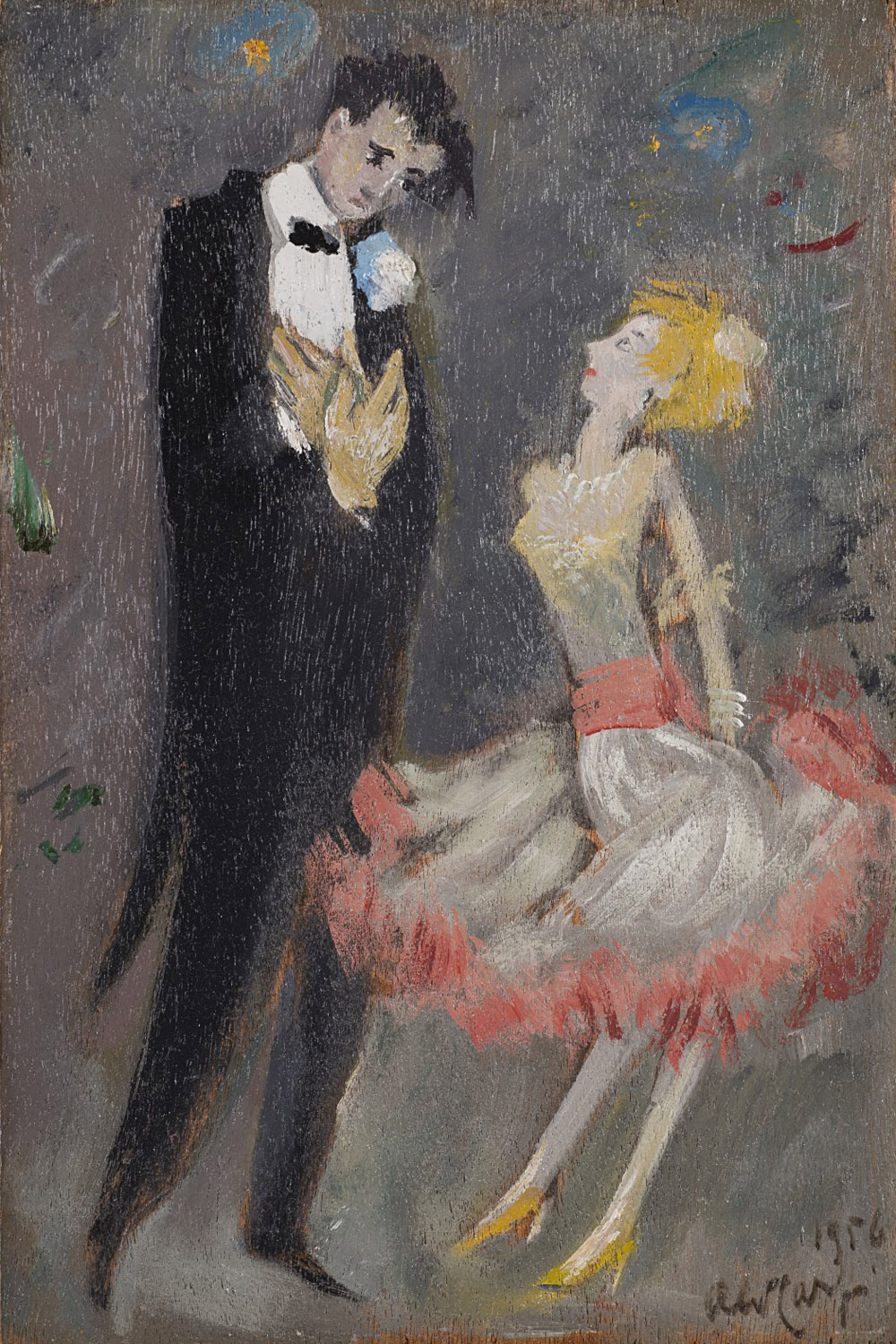 Aldo Carpi dè Resmini (Milano 1886 - 1973) "Invito a ballare" 1956 olio su compensato (cm 30x20) Firmato e datato in basso a destra Al retro: firmato e datato In cornice