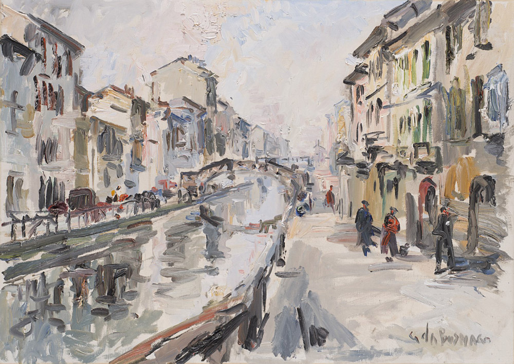 Lotto 18 | Giovanni Colombo da Busnago (Busnago 1908 - Gaggiano 1972) "Il Naviglio" olio...