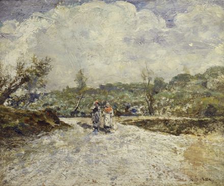 Attilio Pratella (Lugo di Romagna, 1856 - Napoli, 1949) FIGURE IN CAMPAGNA Olio su compensato, cm. 15x18 Firma in basso a destra.